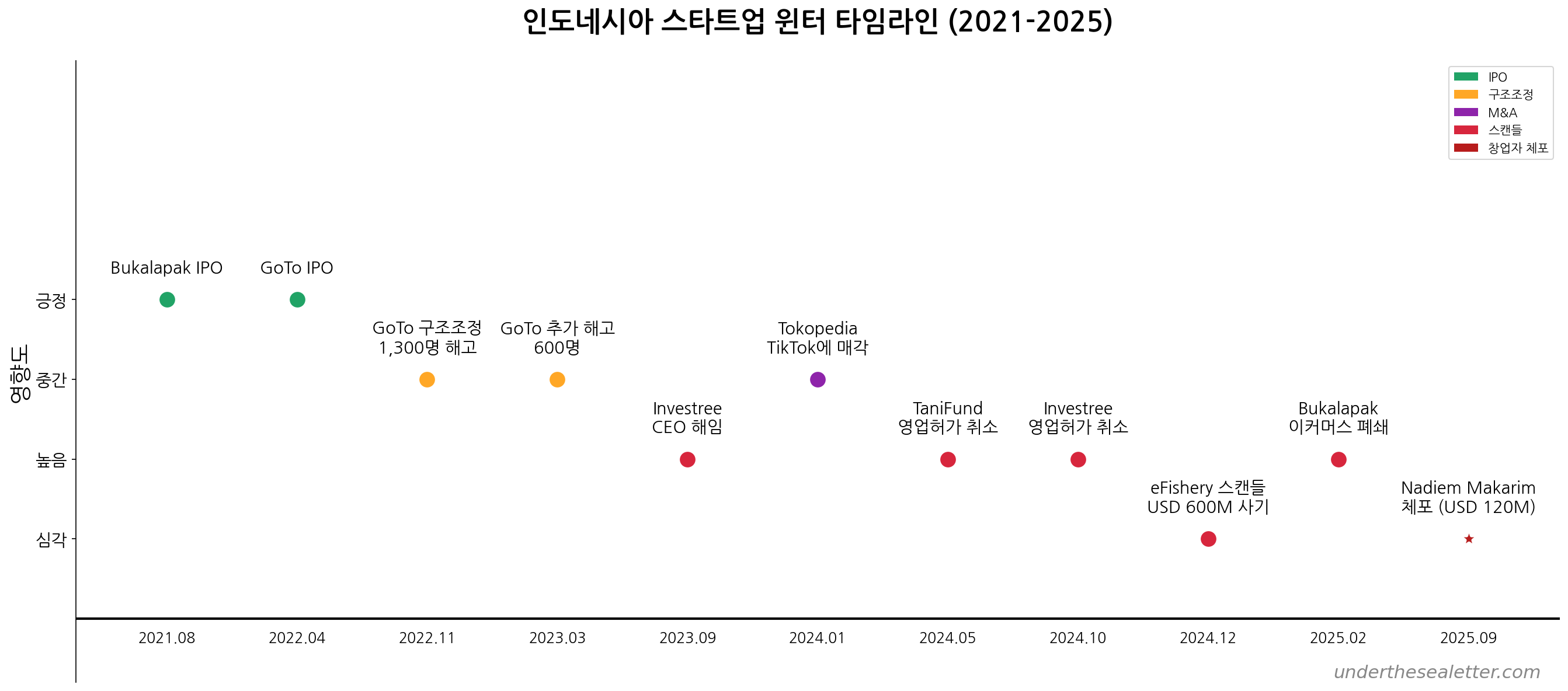 펀딩 감소 이후 유니콘들의 몰락과 스캔들들은 개별 사건이 아닙니다. 펀딩의 감소가 인도네시아 스타트업 창업자 사이에 만연했던 회계조작과 횡령을 드러나게 하고, 각각의 사건들이 투자자들의 투자심리를 위축시키며 투자 감소의 연쇄작용을 일으켰습니다.