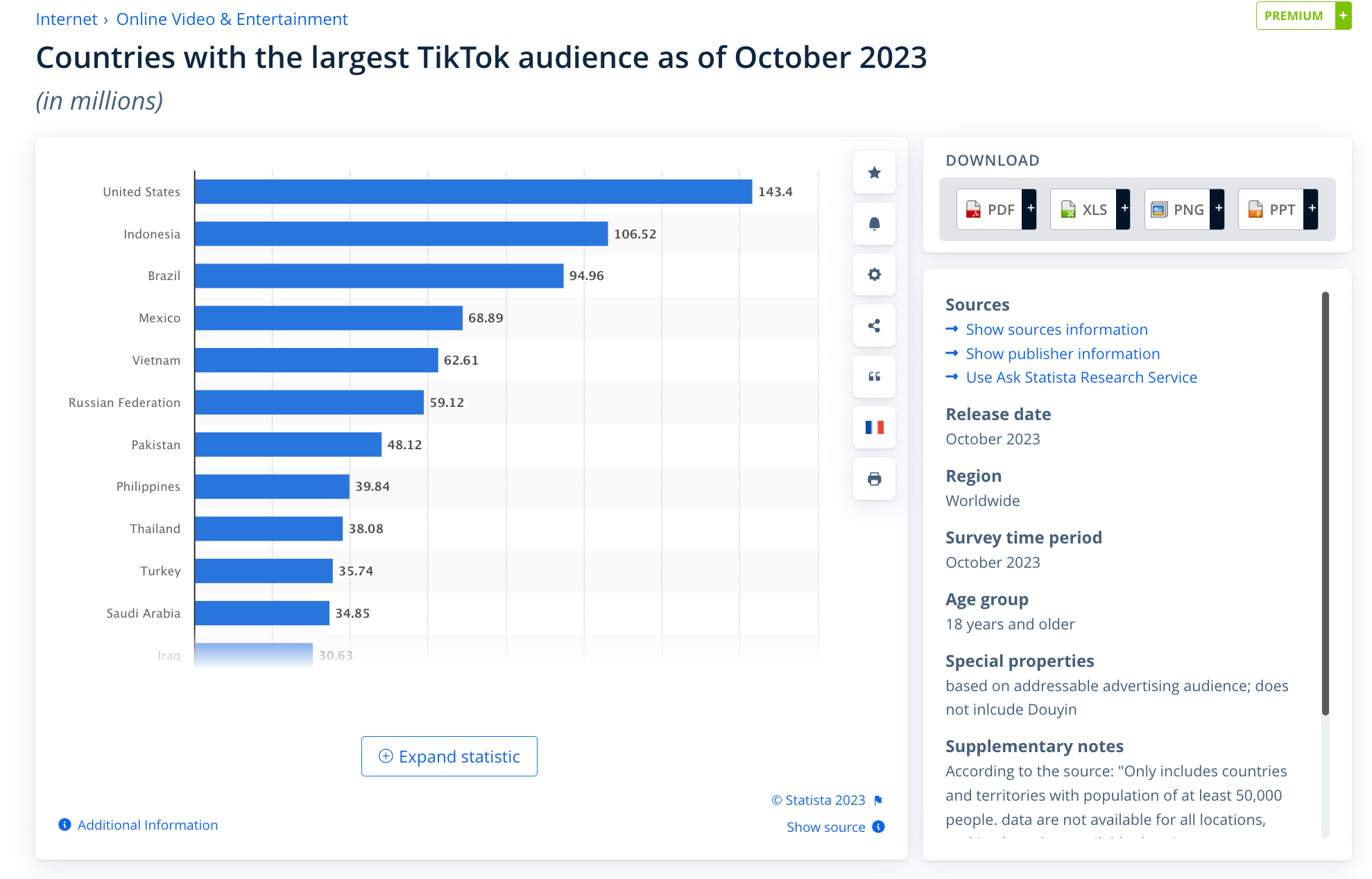 틱톡의 가장 큰 유저풀은 미국이지만, 인도네시아 역시 무시할 수 없습니다. Statista의 통계에 따르면 인도네시아가 전 세계 틱톡 사용자 숫자 중 2위를 차지하고 있습니다. 아직 인당 소비력이 크진 않지만, 규모를 생각했을 때 절대 간과할 수는 없는 유저풀이죠. 특히 젊은 유저층이 많은 동남아시아, 그리고 인도네시아는 틱톡이 앞으로 잡고 가야 할 유저풀입니다.