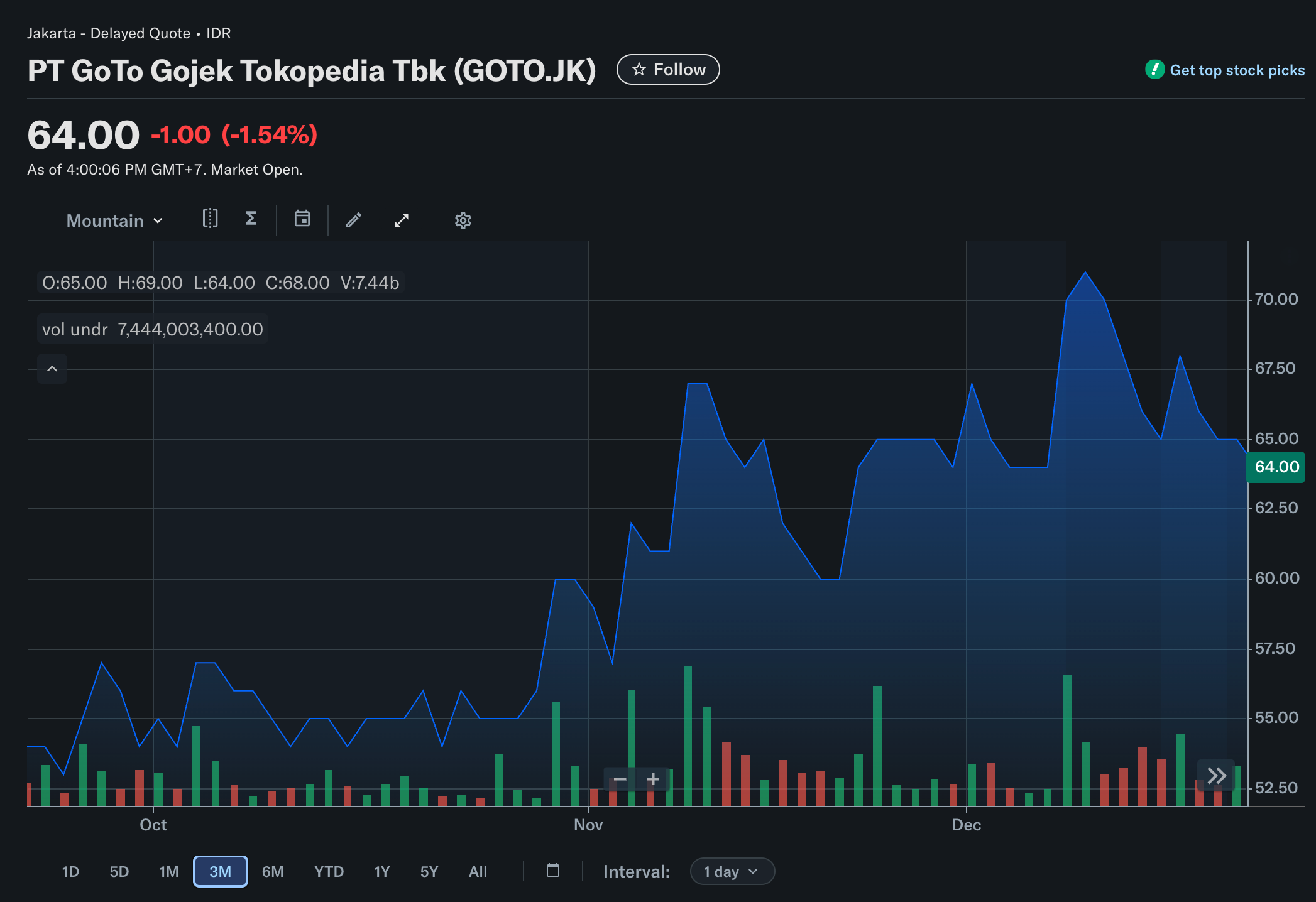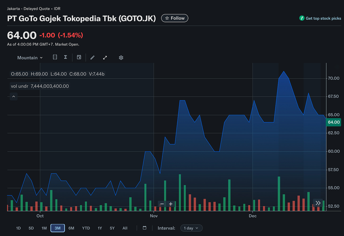 시장 반응도 즉각적이었습니다. GoTo 주가는 이번 분기에만 20% 이상 상승하며 글로벌 라이드헤일링·딜리버리 기업들 중 최고의 성과를 기록했습니다.